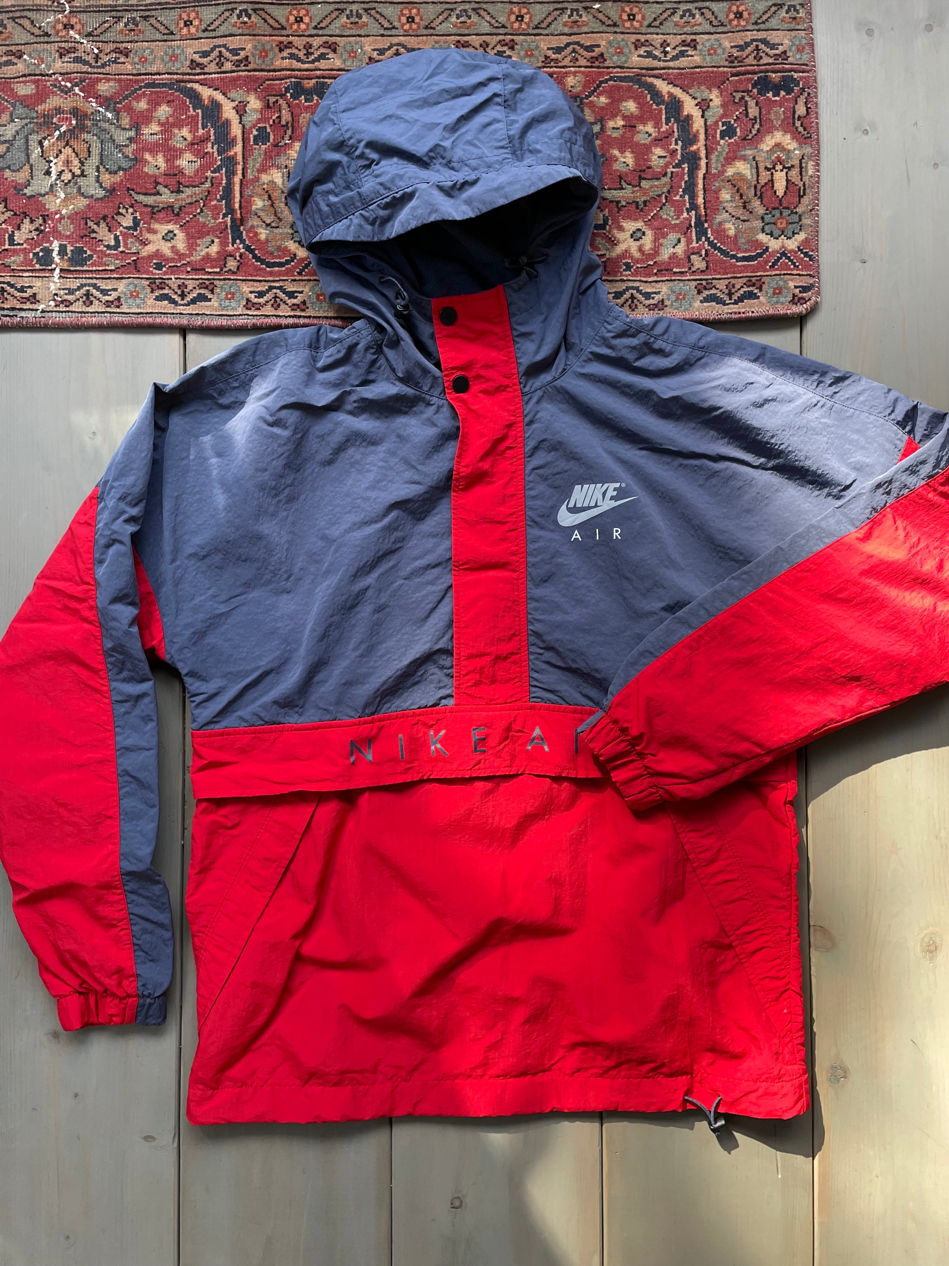 NIKEのアノラックパーカーです。さらりとした着心地とオーバーシルエットが可愛い一着。チャコールグレーに赤の配色がパキッと決まってかっこいいです。タイトなスカートやゆるっとしたスウェットパンツで合わせると◎